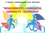 Щорічне проведення 3 грудня Міжнародного дня інвалідів має на меті сприяти кращому розумінню проблем, з якими стикаються інваліди, реалізації прав людей з обмеженими можливостями та усвідомленню того, які переваги має залучення їх до участі в різноманітних галузях політичного, соціального, економічного та культурного життя .